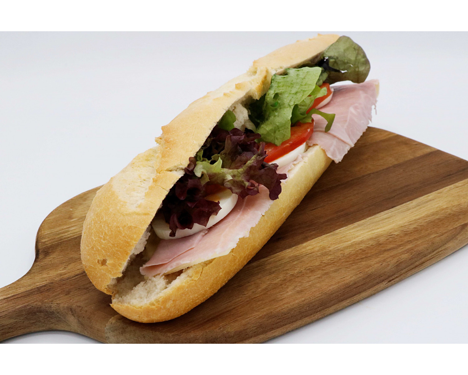 Ham, gouda, salad, tomato, hard-boiled egg, mayonnaise.