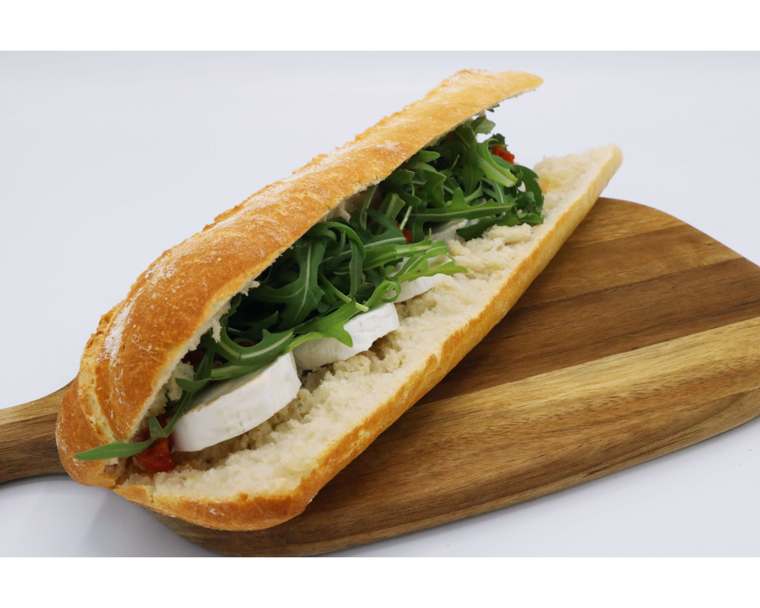 Goat cheese slices, dried tomatoes, honey, pine nuts and rockets.