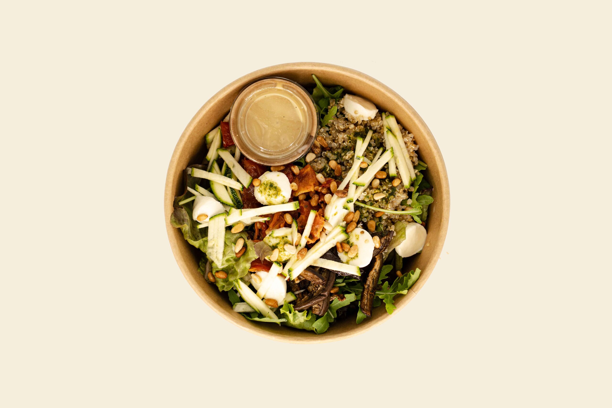 Salad, assortment of vegetables (raw, cooked or grilled), a dairy product and a starch (pasta, quinoa, lentils or tabbouleh) of Auntie’s choice.